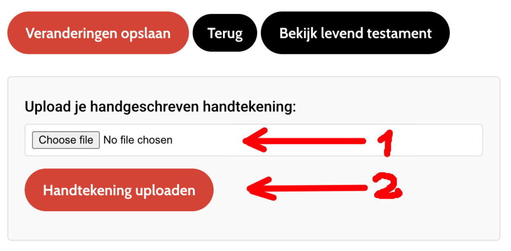 Nadat u het levenstestament voor de eerste keer hebt bewerkt, ziet u een extra zwarte knop “bekijk het levenstestament“, van waaruit u het kunt bekijken, afdrukken en doorsturen.